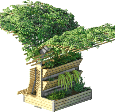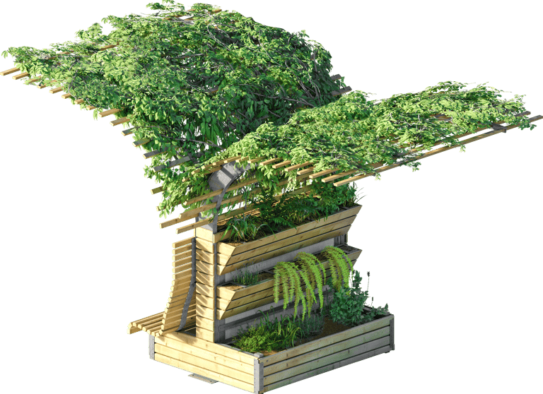 Ce sol vertical permet d’employer des végétaux de type liane tel que le chèvrefeuille le jasmin étoilé ou encore la clématite. L’emploi de ce type de plantes permet par conséquent d’économiser 50 % d’eau en comparaison avec la plantation d’un arbre. La croissance rapide de ces végétaux permet de recouvrir l’intégralité de la canopée sur une durée de cinq ans. Alors qu’il en faudrait plus de 30 à un arbre pour atteindre une telle surface.